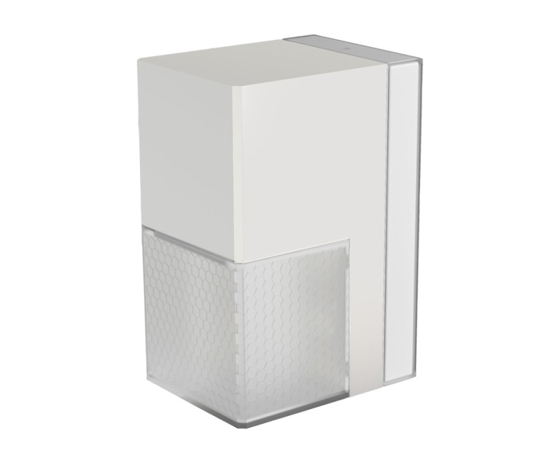 Detector de movimiento mural (interior y exterior) con ángulo de detección de 180º y lente vertical inferior adicional. Diseño estético. Luz ambiental configurable mediante aplicación B.E.G. por Bluetooth y alcance de 3 m a 16 m”