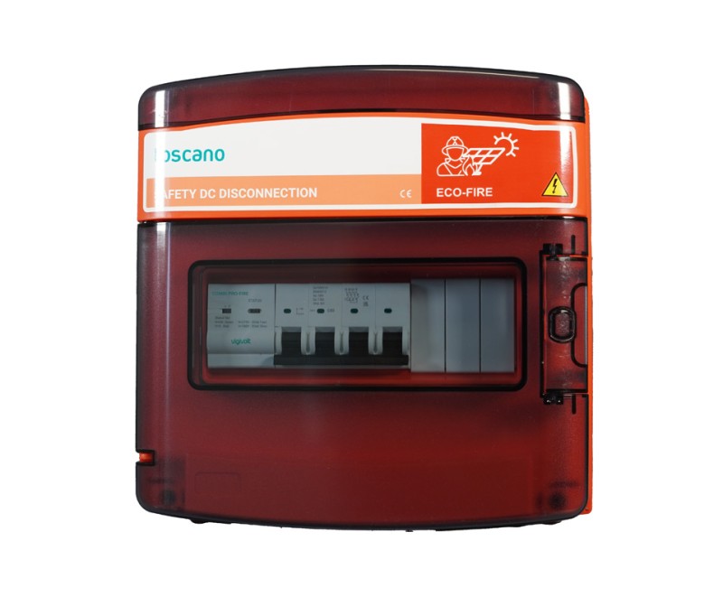 El COMBI-PRO-FIRE es un dispositivo de seguridad para instalaciones fotovoltaicas que desconecta automáticamente el flujo de corriente de los módulos fotovoltaicos en caso de corte de red o mediante la activación manual de una seta de emergencia. Diseñado para la intervención segura de bomberos y personal de mantenimiento. Su reconexión es automática una vez restablecida la red o desactivando manualmente la seta de emergencia, asegurando un funcionamiento eficiente y sin interrupciones.