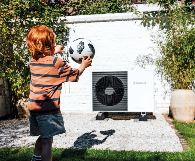 Su unidad exterior, una de las más pequeñas de Vaillant, ocupa menos de medio metro cuadrado, y la torre hidráulica uniTOWER Split plus, gracias a su huella de 595*600 mm, cabe en un armario de cocina.